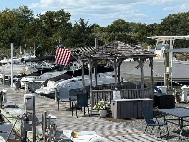 One of our favorite gathering places, our gazebo has survived the storm and is still here to let you feel the cool breeze, laugh with your friends, or make some new ones. You're welcome to enjoy any of our gathering spots! To make sure that everyone gets to enjoy these, we request that no cooking of any kind is done within the confines of the structure and that there be no crabbing off the dock.